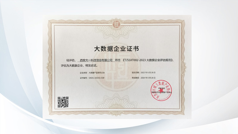 公司自成立以來完成項(xiàng)目交付2000多個(gè),自主研發(fā)產(chǎn)品100余項(xiàng),是國家級(jí)高新技術(shù)企業(yè)、雙數(shù)評估企業(yè)、雙軟評估企業(yè)、大數(shù)據(jù)成長企業(yè)、大數(shù)據(jù)匠心服務(wù)企業(yè)、AAA級(jí)信用企業(yè)、ISO9001質(zhì)量管理體系認(rèn)證企業(yè),是陜西省區(qū)域大數(shù)據(jù)產(chǎn)業(yè)協(xié)會(huì)會(huì)員單位、陜西省軟件行業(yè)協(xié)會(huì)理事單位、陜西省互聯(lián)網(wǎng)協(xié)會(huì)會(huì)員單位。